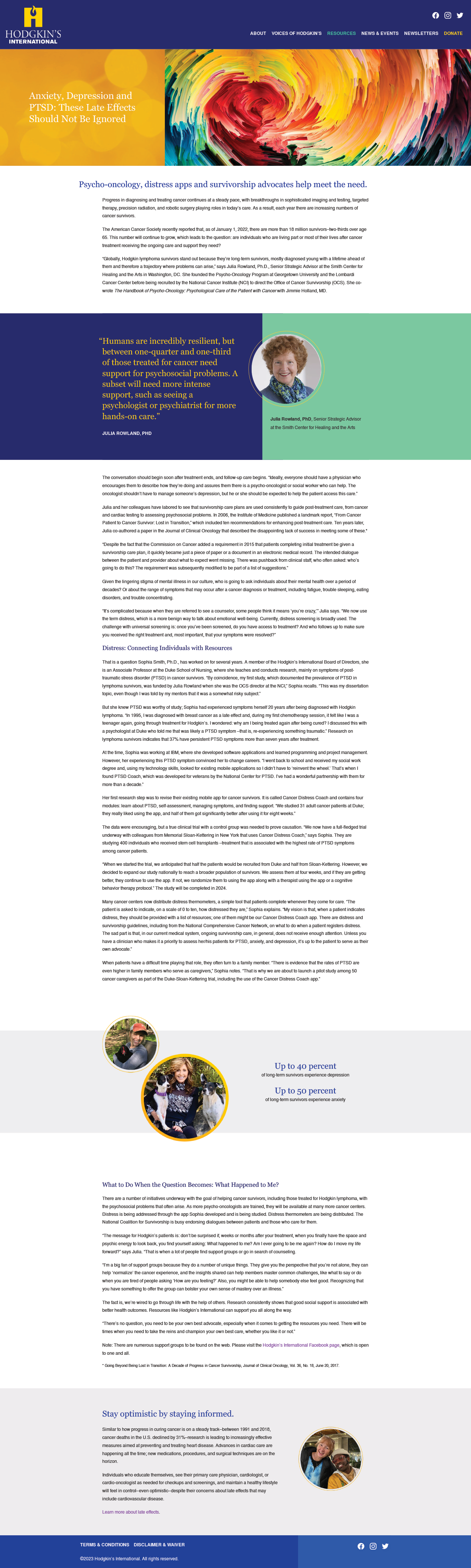 Hodgkin’s International is an organization dedicated to improving the quality of life for Hodgkin lymphoma survivors. Their goal is to connect survivors with one another and to provide them with essential, up-to-date information about the late effects they may face as a result of earlier treatments.